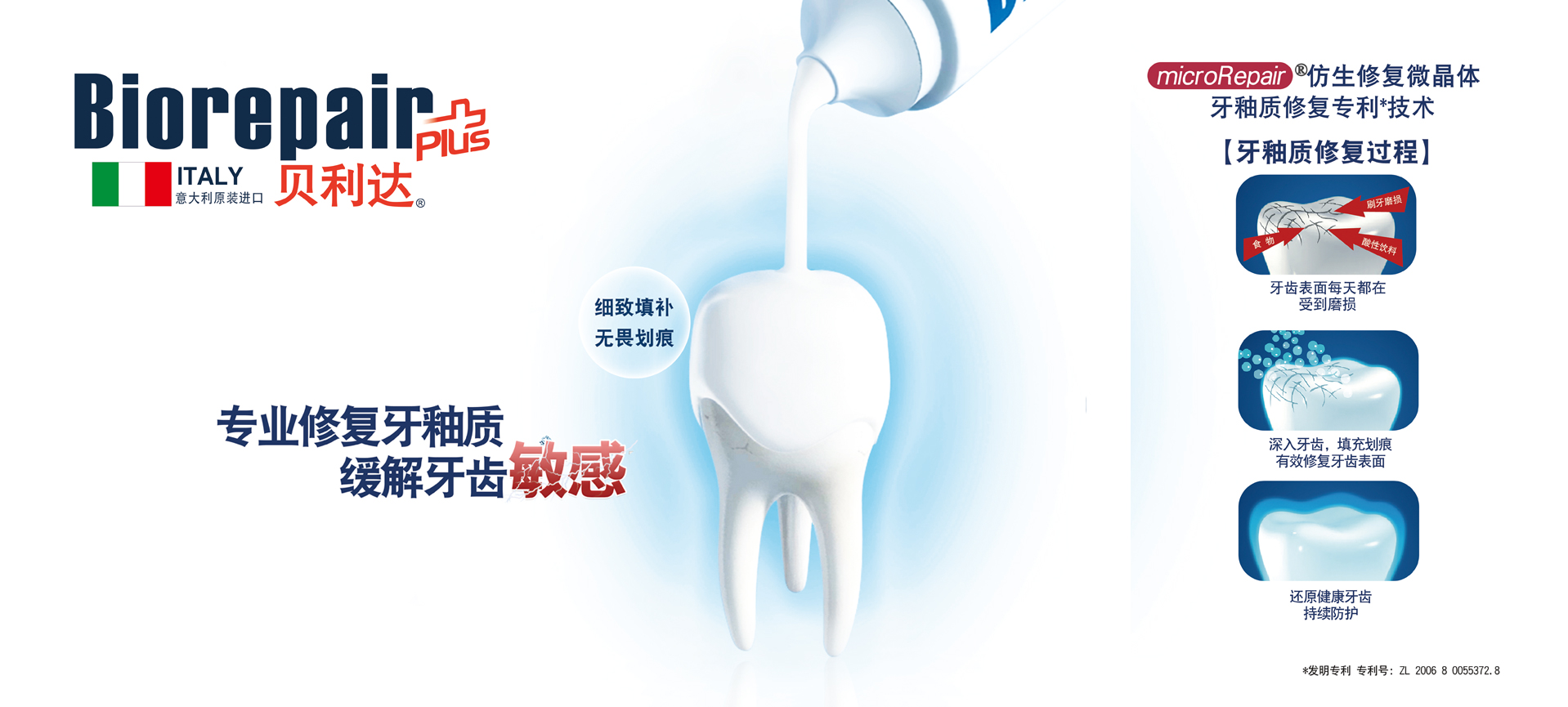 經(jīng)多年的臨床研究,證實了貝利達牙膏中所含專利成分Microrepair?仿生修復(fù)微晶體具有有效修復(fù)牙釉質(zhì)的作用,能重建牙齒表面的天然牙層。并在2010年在歐盟官方極具權(quán)威性的臨床牙周病期刊上(Journal of Clinical Periodontology )發(fā)表了該實驗成果。